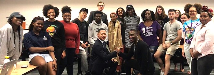 This is an initiative that initially began as an in class assignment for students in the Hip Hop in Africa course. The course is a joint course taught with students at Howard University and George Washington University, taking the course together. Students must come together in groups of two or three and select a research topic related to the course. Students are also allowed to do the project individually. After completing their research, students must then record a 15 minute audio podcast..